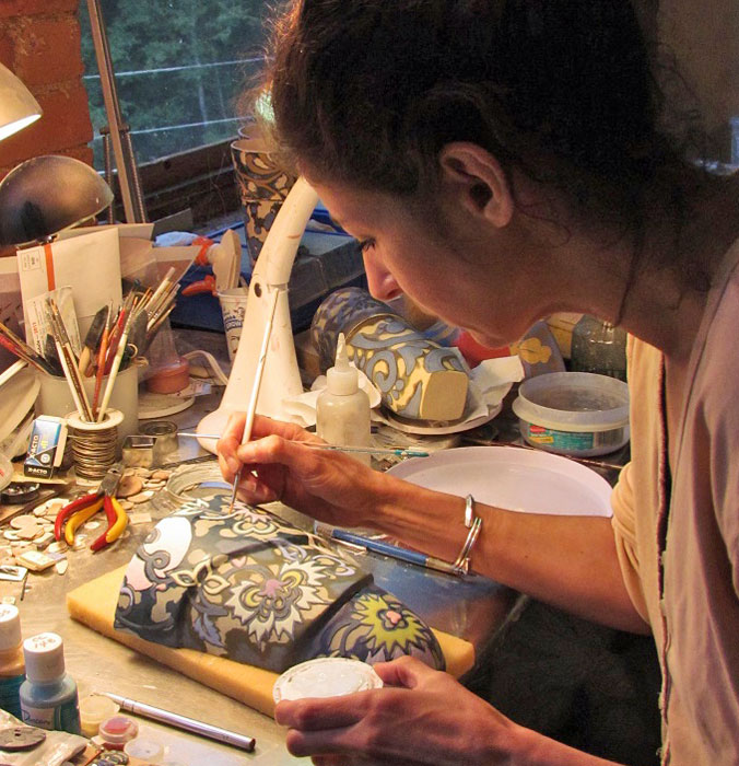 I have been an artist for most of my life, creating work in a variety of media and acquiring new skills along the way. Studying architecture, sewing, calligraphy, screenprinting, bookbinding, jewelry, painting and ceramics, my surface pattern designs often reveal a bit of this journey, as well as favorite cultural influences from my travels.
